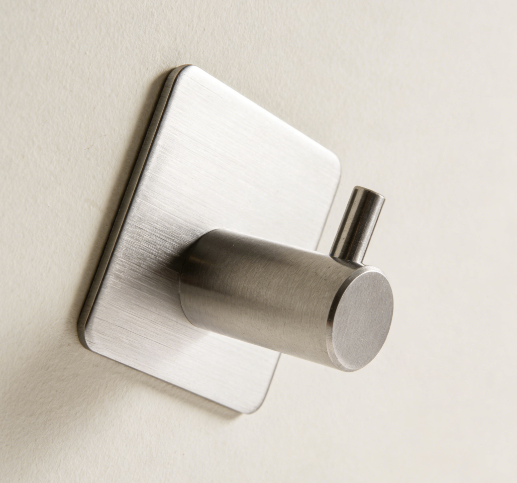 adhesive stainless steel bathroom hooks for towels and robes feature a polished finish suitable for modern interiors. Stick-on installation allows easy placement without tools or drilling. Each hook supports lightweight linens or accessories, keeping walls uncluttered.